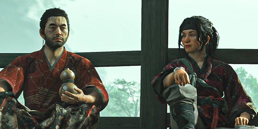 Jin Sakai is riding with his uncle, Lord Shimura. He has just rescued Shimura from captivity. He tells his uncle, honestly and without games, that he trusts Yuna — the person who helped make the rescue possible.